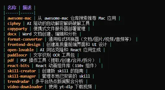哦这个管理skills的skill,也是我自己建的一个skill,要不然感觉每次进到文件里看太麻烦了,我就可以直接用这个skill,对我本地的所有skill进行卸载删除修改优化操作...