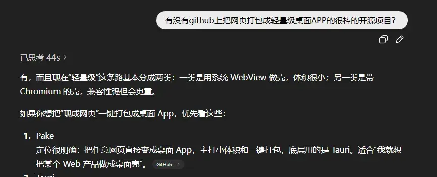 Github上一个45k的超棒的项目,那就,直接Skill化,以后,你的网页开发完,直接就可以用Pake skill,一句话变成桌面APP。