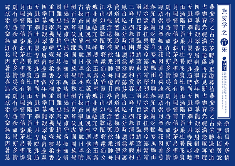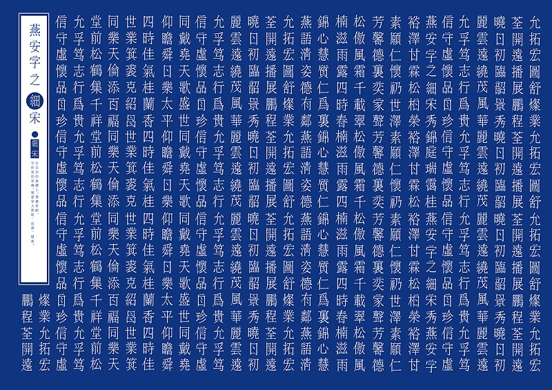 “燕安字”以宋体为骨架根基,共三套,因而分别命名为古宋、细宋、楷宋。