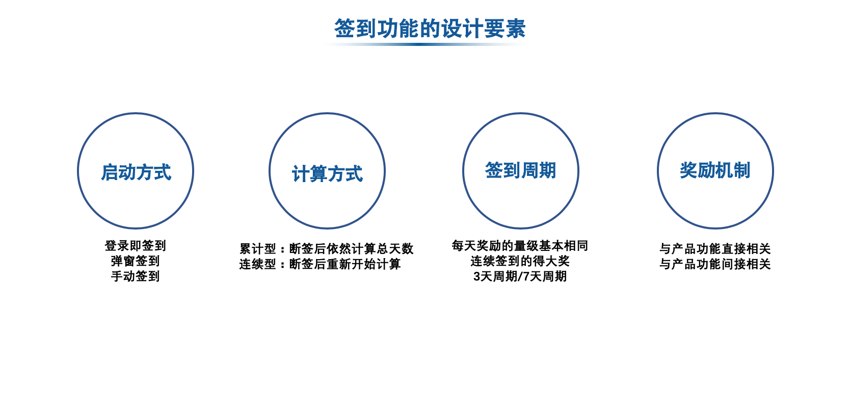 签到的组成要素有:启动方式、计算方式、签到周期、奖励机制。