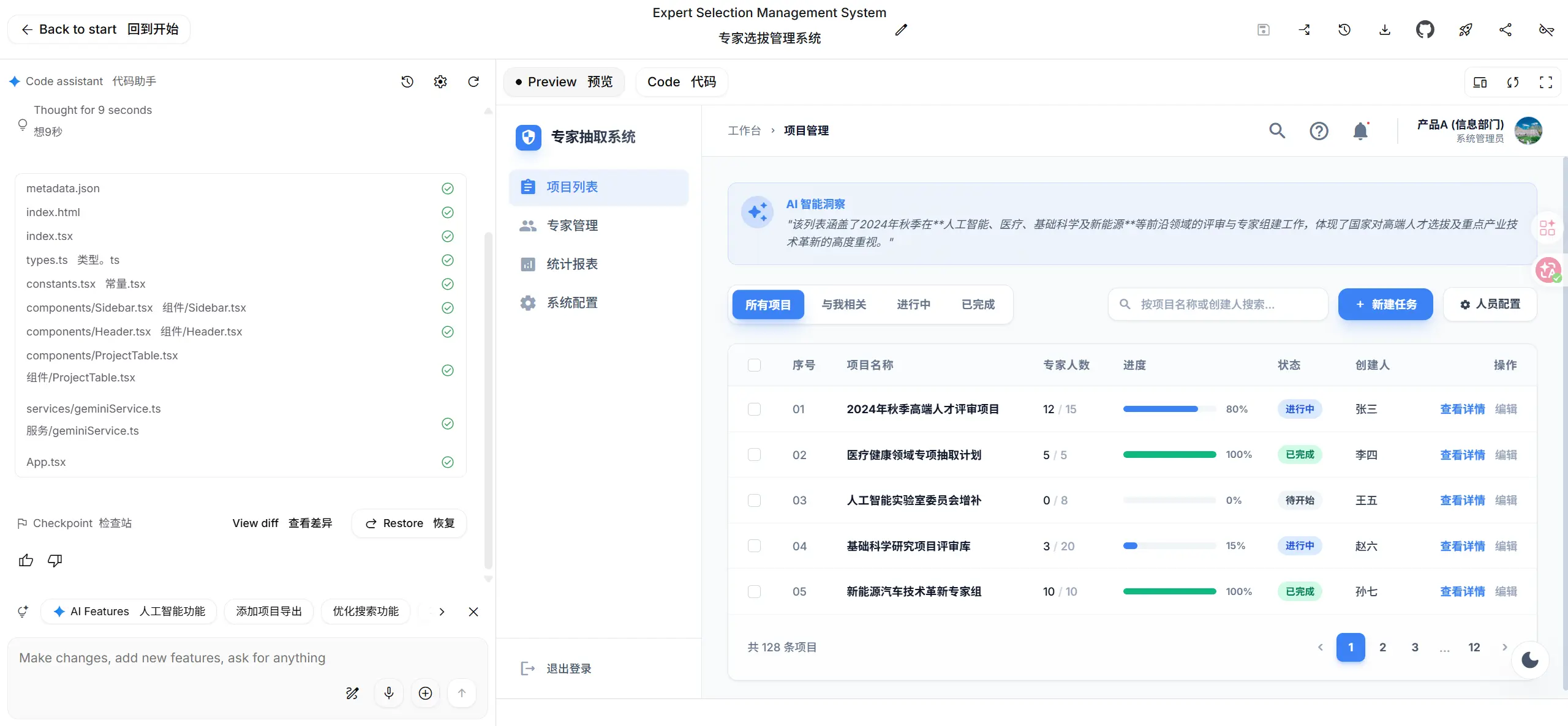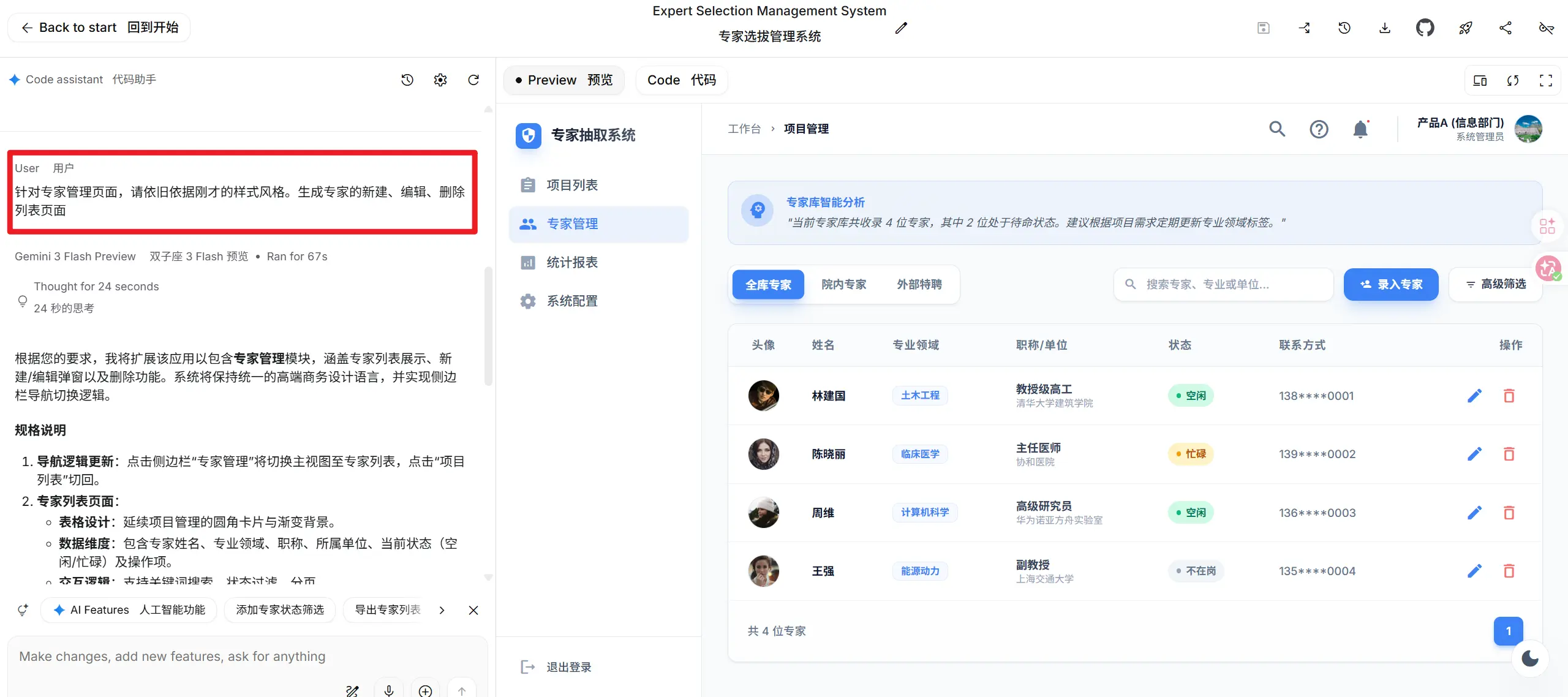 最令我惊讶的是,AI Studio允许我通过自然语言描述复杂功能:“这个表格需要有分页、排序和筛选功能”,它就能生成对应的React组件及状态管理代码。