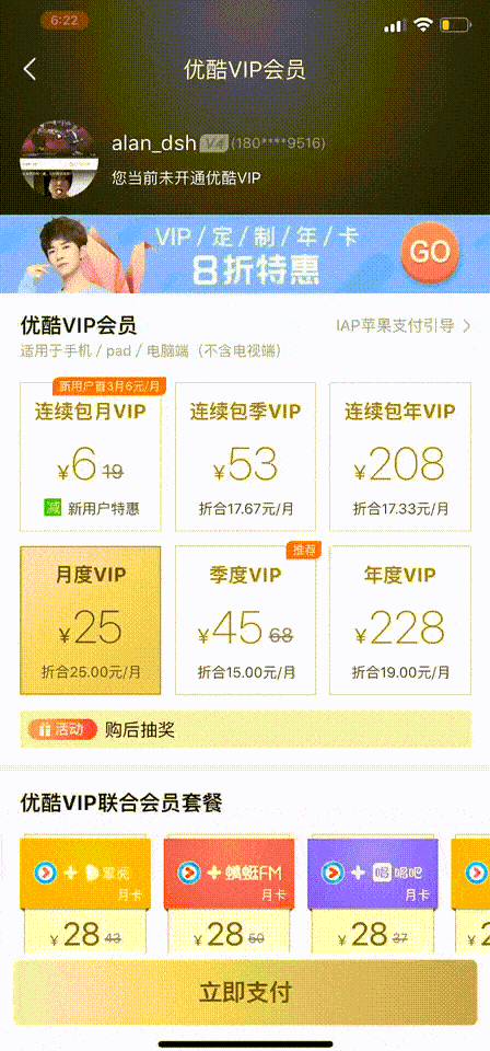 在一个页面中,必然存在一个最希望用户执行的主任务。例如下面的页面,购买会员套餐是主要任务,联合会员套餐是次要任务,而页面其它信息,都是在辅助主要任务的。