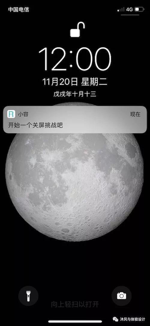 这条push,应该是应用的设计者,自定义在每天12点发送,企图提高应用的打开率。可是,都中午12点了,我本应该开开心心地吃午饭、玩手机,为啥这时候要进行关屏挑战呢?关屏挑战,是为了防止用户不停玩手机浪费注意力,午休时段真真是最不合适的场景之一了。在最不需要做某件事的时候,频繁出现“你该做某件事了”的提醒,这样的打扰对应用的体验伤害很大。