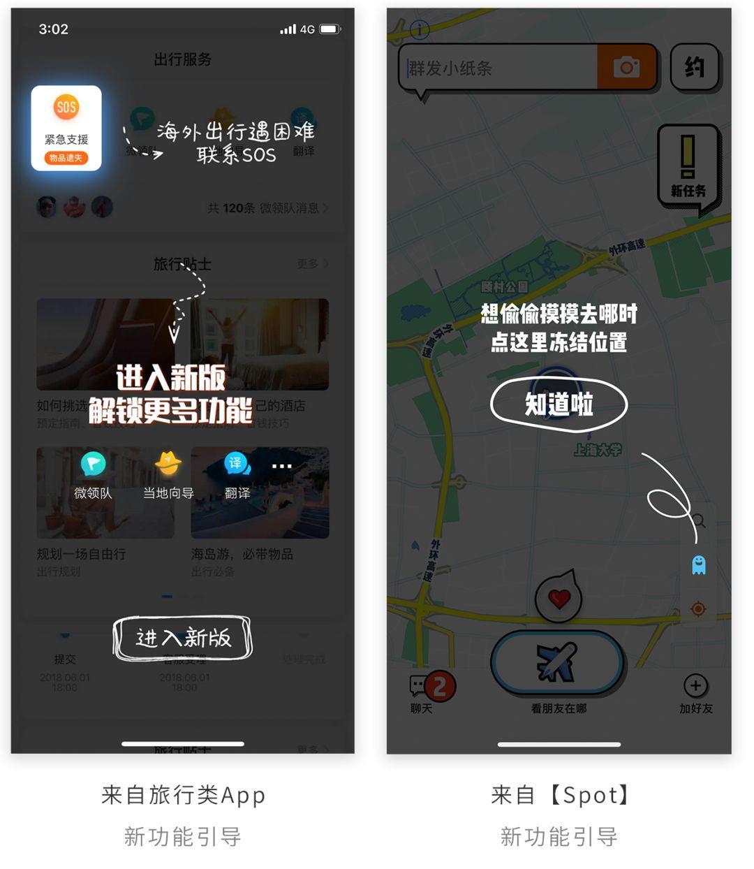 这两个引导的都是全屏大面积引导用户,此类引导有利有弊。好处是用户对于功能介绍有个更清晰的了解,坏处是用户可能会对新功能完全不感兴趣,增加用户操作负担。因此这类引导需要慎用,如有必要在页面上可设计一个可关闭的按钮(但实际应该设计成点击屏幕任意区域关闭引导)。