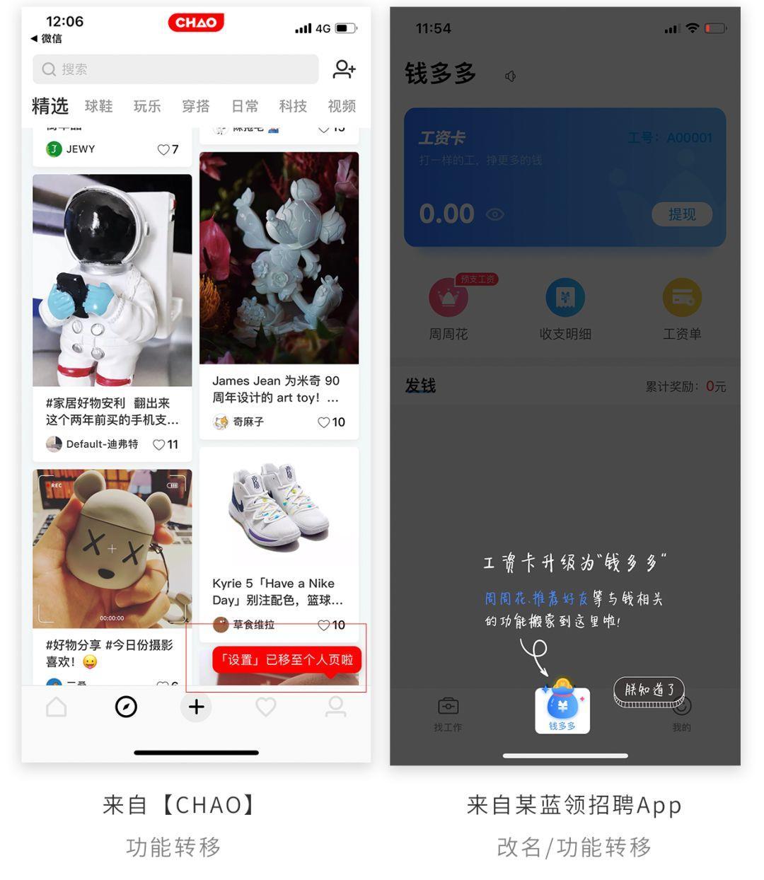 很多产品在迭代过程中会根据数据和用户反馈,把一些功能进行组织和转移也有些产品会修改某个功能的名字,告知用户。