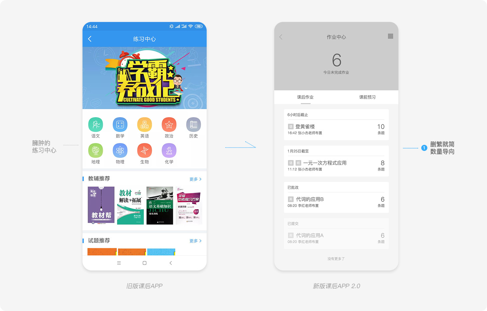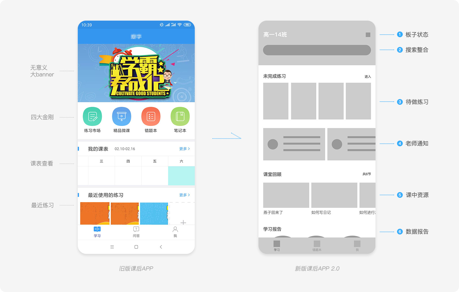 根据体验地图的分析,围绕课后做题的核心需求,新版本应该确保信息元素的优先级层次与可用性,确保界面更加符合用户心流直觉。