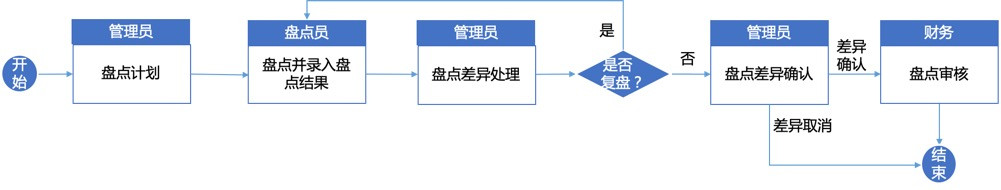 盘点完成后,库管员核实盘点结果,判断是否需要复盘,若需要复盘,再次对盘点单中需要复盘的库存明细重新生成盘点任务。