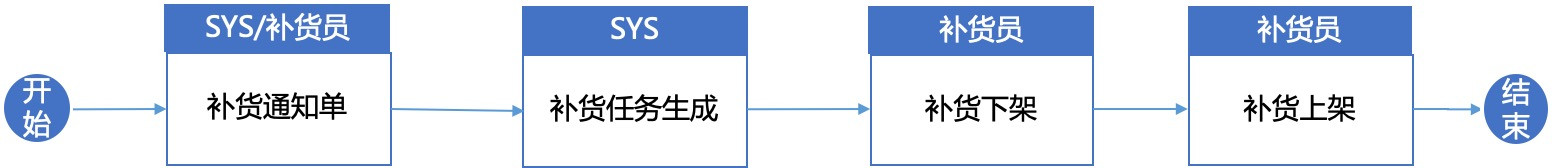 补货作业:由通知单生成补货任务,再由下架员按照系统提示从指定整件货位拣货下架,并送往目的零货货位,在零货货位上架,完成补货流程。