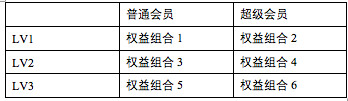 最简单权益体系是没有等级制下的会员,所有会员的权益都是一样的。其次,是等级制下的会员,权益体系是按会员等级区分(如下图)。最后,是等级制下多会员类型的会员假如会员等级分三级,会员类型分为两种,那么权益组合就有6种(如下图)。