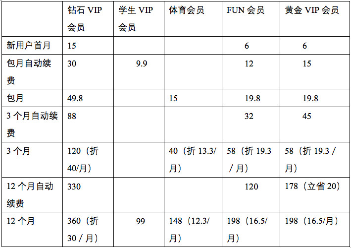 付费会员、等级会员(7级)、多元会员(学生、黄金、钻石、体育、FUN)