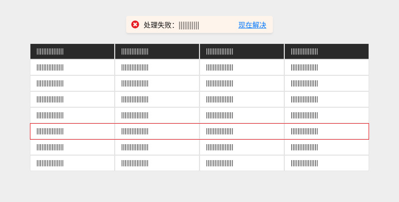 • 协助用户完成任务:系统先将没有问题的数据全部处理完毕,再向用户报错,而不是直接终止进程;如果报错内容可被更正,直接引导用户到相应页面更正;如果报错内容不可被更正,告知用户原因,自动定位到报错的数据行并高亮显示,避免用户找不到报错的数据。如图5。