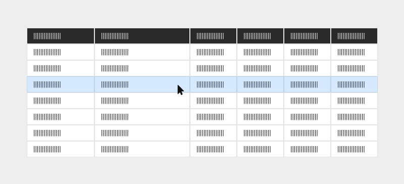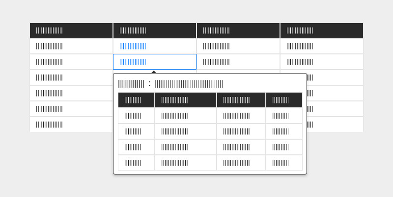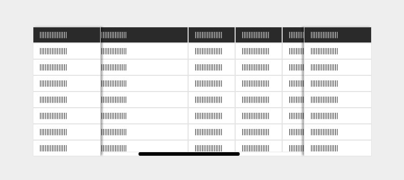 • 当列数和行数太多时,横向滚动条和纵向滚动条会同时出现。纵向滚动条可以当用户滚动时或鼠标悬停表格边缘时才出现,横向滚动条建议始终显示或者鼠标悬停表格时才出现。