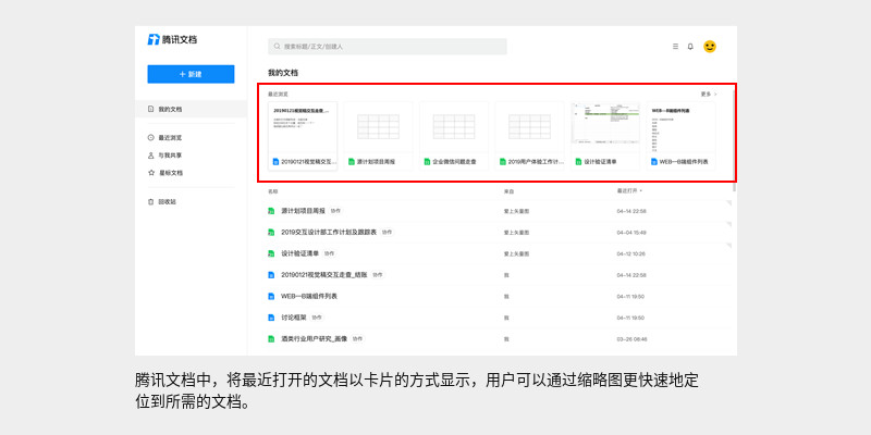 • 如果用户更多倾向快速选择,可将表格改成列表或卡片等形式。如图6,腾讯文档为例。