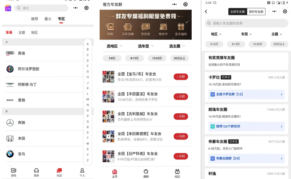 回到有车以后车友圈这个产品本身,社区从最早的以pc时代的专区思路为纽带链接不同需求的用户,改为自建全国最大的规模化微信车友集群。再到后来以车友圈为内容精选活跃阵地,以车友会为最小的活跃单位而做的社区社交化工具。毫无疑问,进行多次的工具性属性探索以后,最终才能找到了踩中用户需求痛点的路。