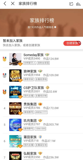 这里直接产生了一个叫“家族”的功能形态,家族成员为了让网红获得更好的推荐位,又会尽全力扩散、投入资源、打赏。