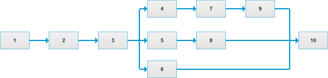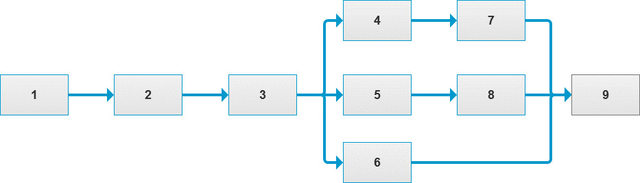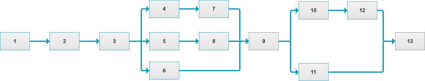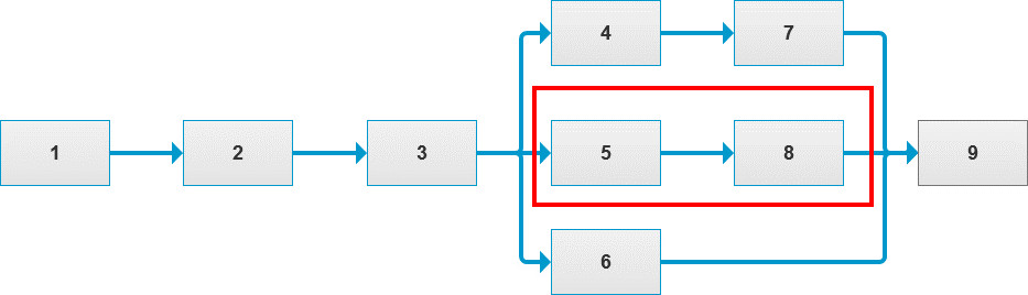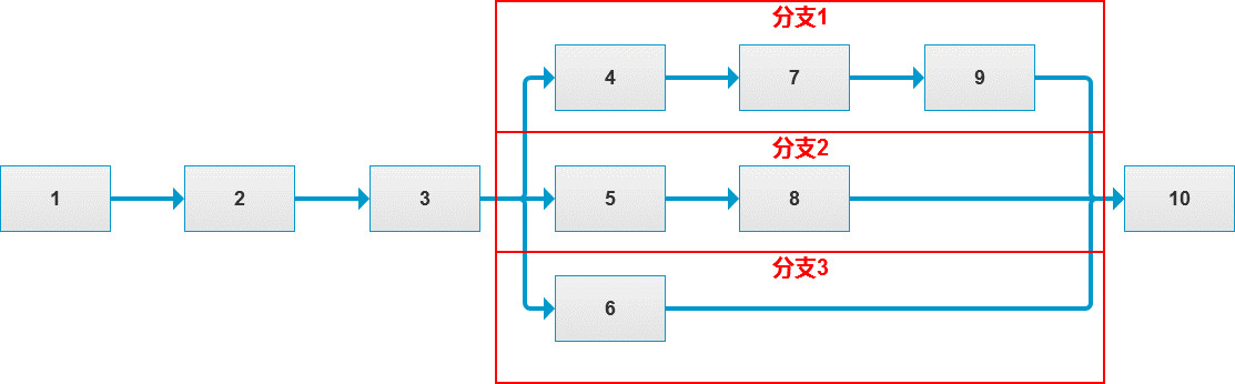 在示例中共有5个并行分支,分别是4、7与5、8与6与10、12与11
