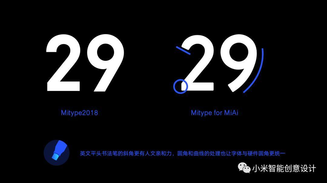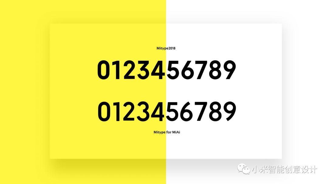 在设定大数字字体之初,我们几乎尝试市面所有的字体,并没有找到我们心中的完美字体,最终我们决定设计一款小爱触屏音箱的屏显字体,在进行了无衬线字体的字体研究之后,我们找到方向,以MITYPEY为蓝本,保留了前者的几何美感,增加了温度与人文的亲和力。关于【MiAitype字体设计的思考过程】,会在下一期详细展现。