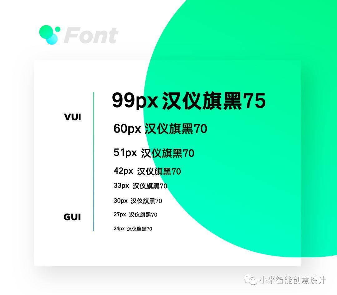 VUI(语音交互)的使用场景中,距离音箱一般大于100cm,屏幕上面的字体需要更强烈的识别性,而当近距离时,GUI交互会更便捷。如果字号还是像远场时那么大,就会浪费屏幕空间。所以需要针对GUI和VUI设置不同的字号与字重。
