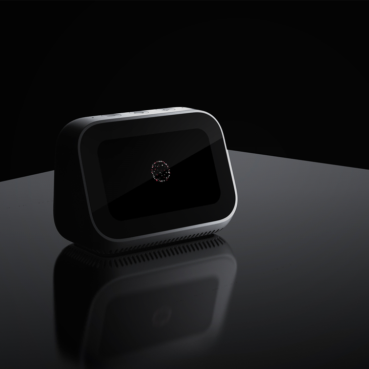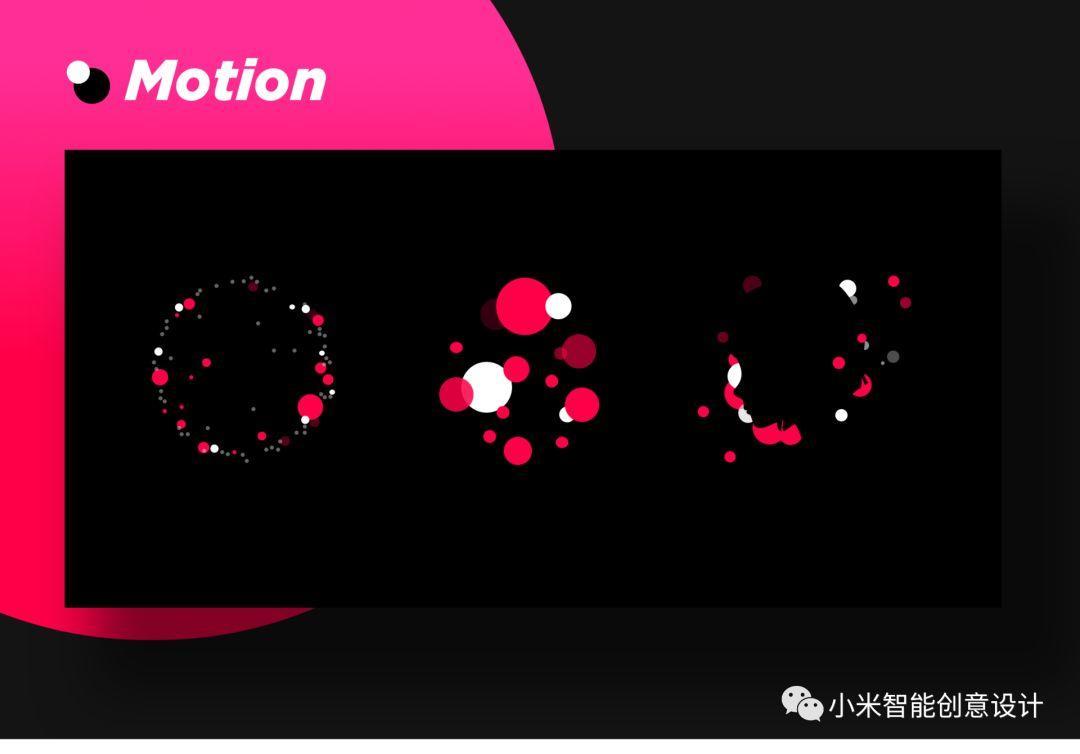 唤醒动效是象征有着生命的科技小爱,而音箱初始化的过程就是小爱正在生长的过程。她们具有同样的视觉元素:圆和红色,并通过汇聚、心跳节奏、扁平质感来表现正在生长中的状态。