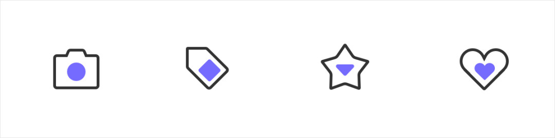 线面可以通过不同的组合形式进行绘制。基于不同的组合形态可以设计出多种多样的线面图标,不同的组合形式会体现出不同的设计风格,因此在设计时尽量多发散思考,寻找出适合你的组合方式。