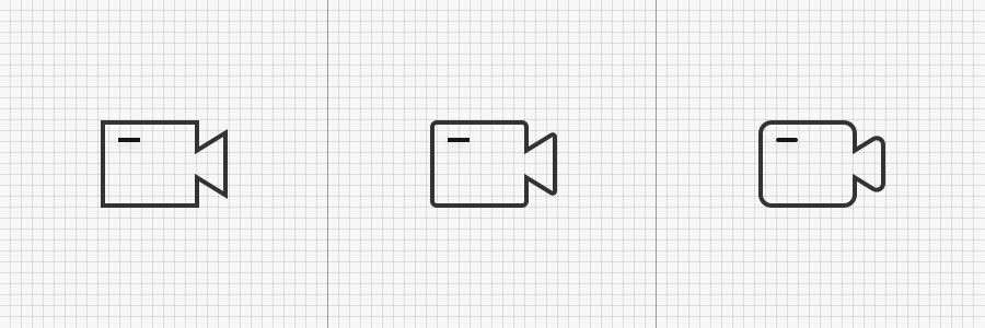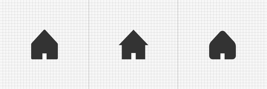 直角与圆角决定了外形的感知和风格的走向,如下图对比中看出,圆角越大图形越趋向于可爱柔美(如下右图),圆角越小则越直接、硬朗和阳刚(如左右图)。因此刚或柔或中间值完全取决于早期对于整体风格的定调。