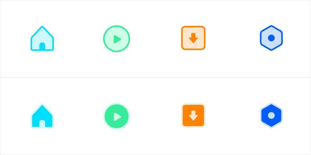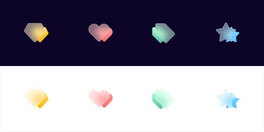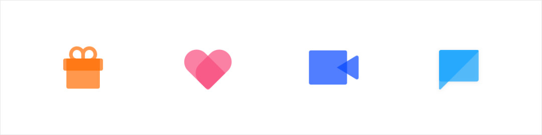 本质上与上面一种为一个类型的设计,通过透明度的叠加和变化,提升图标的层次感和空间感,降低图标的压迫性。