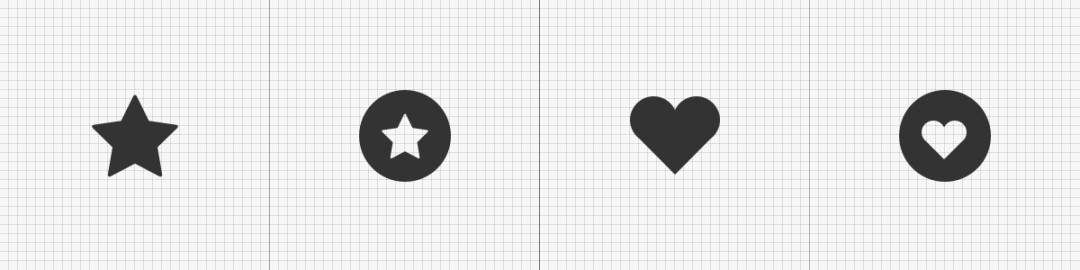 形态上的差异也会具有不一样的视觉感知。以“星”和“心”为案例,单独形体与组合之后的形体相比视觉感知更直观些,而组合形的图标相对会精致一些,更多了一份层次。在日常设计中的经验是:越小的图标形体应该越简单,因此建议单体出现较好;若图标的尺寸足够大时可采用组合形的设计,补充图标的细节。