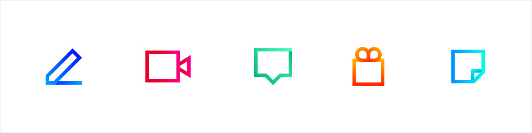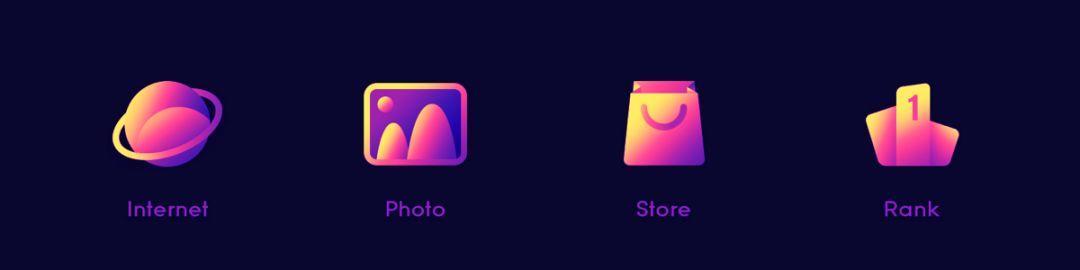 基于上一种风格,对面或者线的颜色进行渐变设计,除了具有丰富图标的质感和颜色更加细腻。