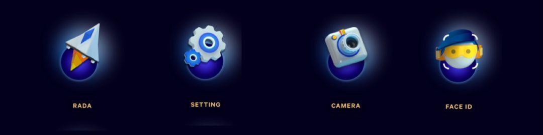 整体风格偏向写实+强渐变+炫光感,每个图标都具有丰富的细节表达。