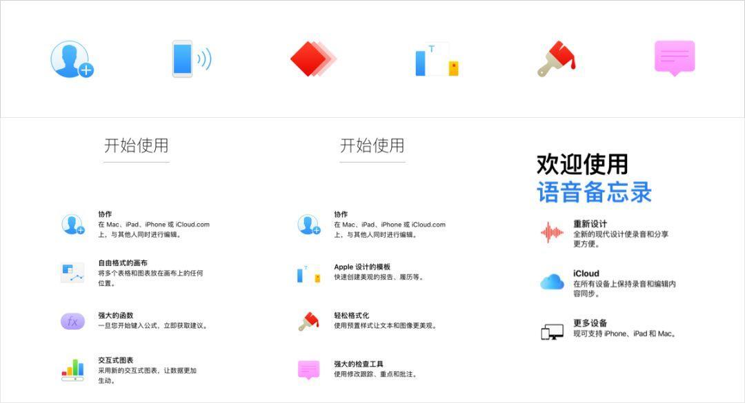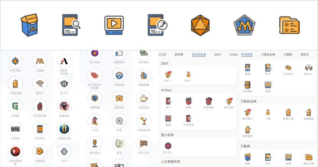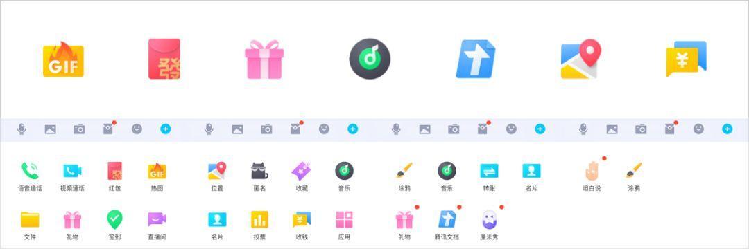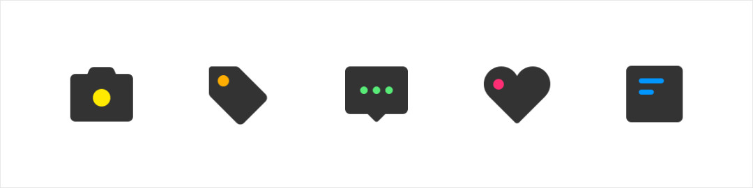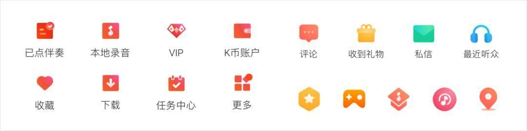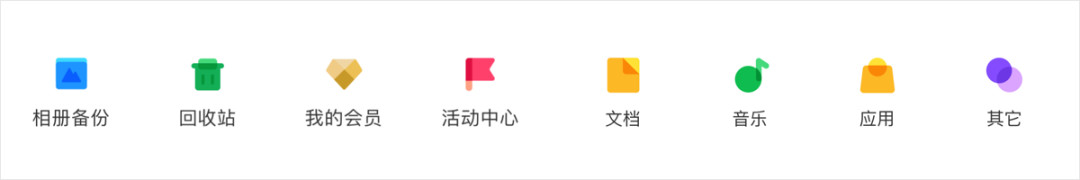 整体的外形使用统一的颜色,结合图标的属性感知使用不同的颜色进行点缀,通过点缀色提亮了图标的视觉效果,达到既统一又具有差异化。