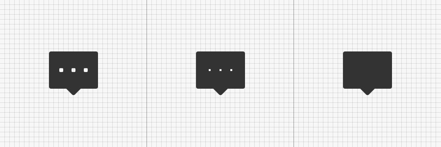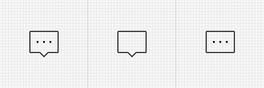 除了简洁程度,也需要考虑图标该有的特征。例如下图“评论”图标的案例,当我把图标中的“三个点”去掉时,图标依旧具有 “对话/评论”的表意,而当我把下面的“箭头”去掉保留“三个点”时,则会出现歧义。它可以被表意为“更多”的意思,因此在设计图标时需要对于表意做精准把握,避免歧义出现。