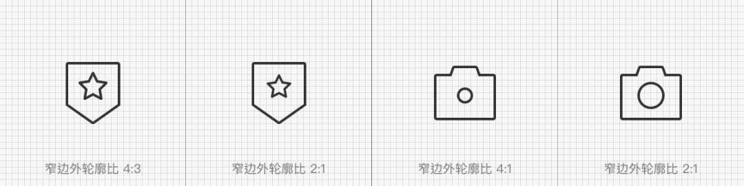 组合形的比例会影响到图标的精致程度,准确的“比例值”能让整体的造型趋向平衡,更具有美感。如下图案例尝试了两组不同比例的效果,这里以图标窄边作为“基准值”进行尝试。