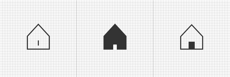 适当的镂空除了补充了图形的识别度之外,还提升了面形图标的设计细节。另外需要控制好镂空部分与整体的外形的比例,过小或过大都可能影响图标的平衡感。如下图的中间和右边,镂空过小对图标的辨识度并没有多大作用,没有镂空则少了一些透气感。