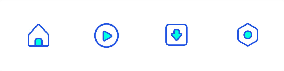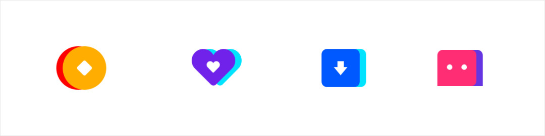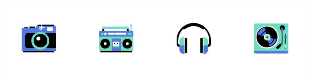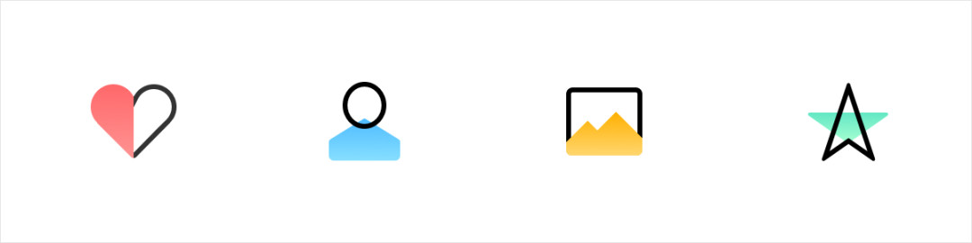 通过对比色、邻近色的搭配来营造整体的图标氛围,提升了图标的层次和丰富度,双色的表达也增添了图形的趣味性。在日常APP中极为常见,简单且容易出效果。
