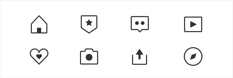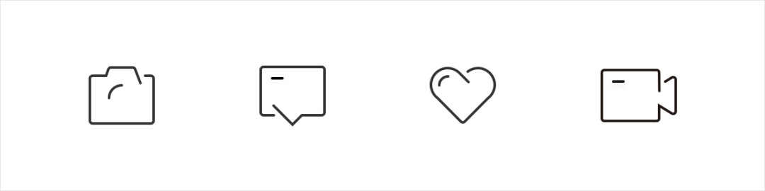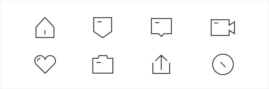 与上一种较为类似,但没有连贯度的要求。在线形图标基础上面,寻找一个缺口来打破 “全包边图标” 的沉闷感。使得图标具有透气性和线条的变化。缺口的位置尽量保持统一的方向及大小,另外需要控制开口个数避免过多导致图标外形过于零碎。