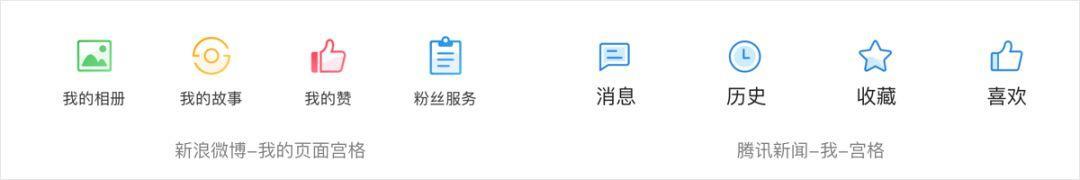 对比互补色:颜色跨度更大,层次更加分明。如下图案例,红色与蓝色的撞色之后相比单色的图标更加出彩和具有记忆点。