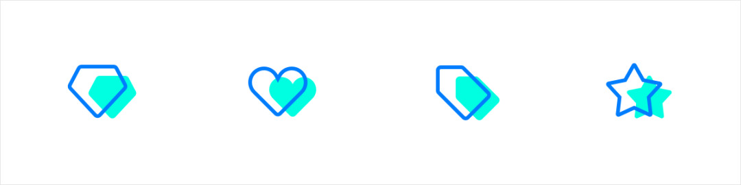 图标透明叠加之后产生了交错的负形,叠加出第三个面。虽然整体设计依然保持着扁平化,但却多了一份层次感,并且增加了图标的细节。