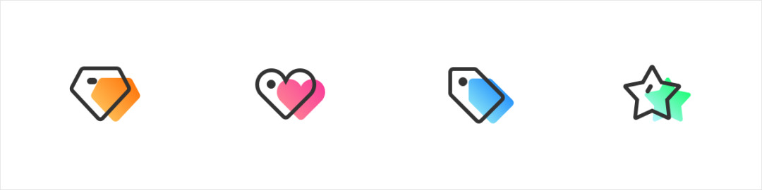 整体的效果与透明度变化的图标较为接近,通过渐变的深浅变化,使得形状的衔接处出现了明暗对比,因此图标也具有了厚度感和层次感。