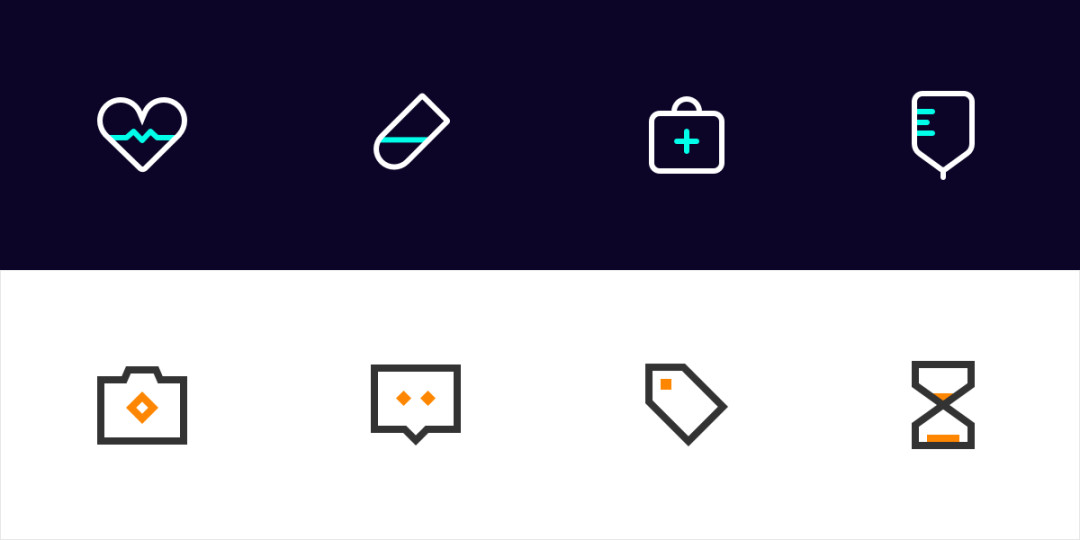 基础的理论,结合延展的应用,可以迸发出更多的创意想法。线形图标也并非只有一种设计形态。通过以下案例,可以看看线型图标设计的类型的多样性。