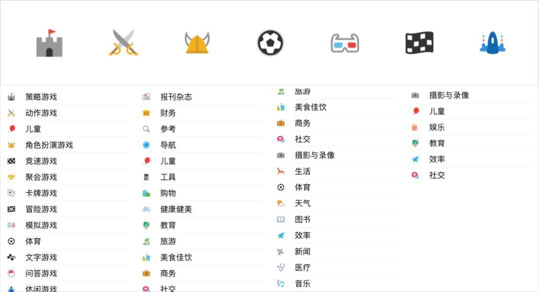 APP Store游戏和新APP界面下的类别列表图标