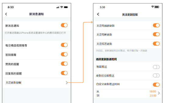 对用户:追剧星人能及时获得关注的电视剧、电影、综艺等视频内容的更新信息;自主设置更新推送时间,避免被打扰