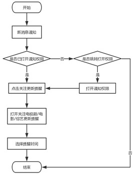 基于点击率和转化率重点设计“关注更新提醒”功能,来提升PUSH拉动用户增长。根据企鹅智酷与腾讯视频的调研,电视剧、电影、综艺等长视频内容的移动端占比都超过了70%,说明大部分用户都存在追剧的行为,据此进行与追剧相关的PUSH功能设计,设计流程如下:
