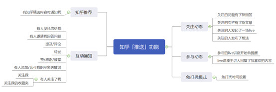 由此可知,在PUSH设置方面,知乎做的非常细致。它将推送的使用场景和用户的使用行为都进行了拆分,从而能满足用户多样化的组合推送需求,避免出现一键关闭推送的情况。
