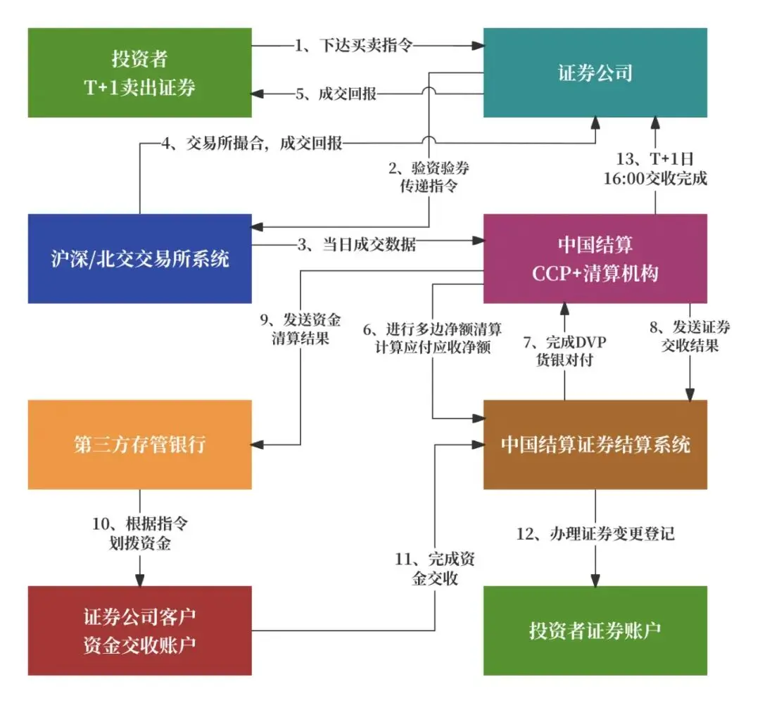 1、T日(交易日):投资者交易,交易所撮合成交。