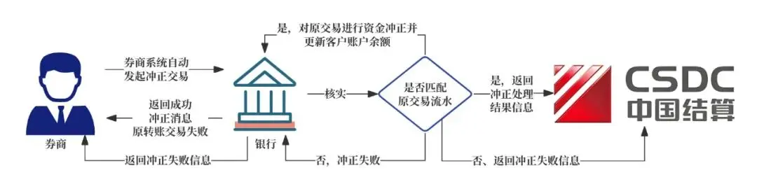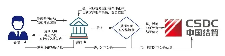 存管银行系统对原交易进行资金冲正,涉及客户银行结算账户、交易结算资金汇总账户和客户管理账户余额的处理;