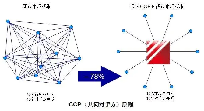 共同对手方:又称为“中央对手方”(CCP),在多边结算情况,证券登记结算机构介入每笔证券交易合同的买方和卖方中间,成为“所有买方的卖方”和“所有卖方的买方”,承担担保交收的责任。大部分证券交易也采取了这种结算方式。中国结算承担着中央结算机构的角色,为参与人提供多边净额结算服务。