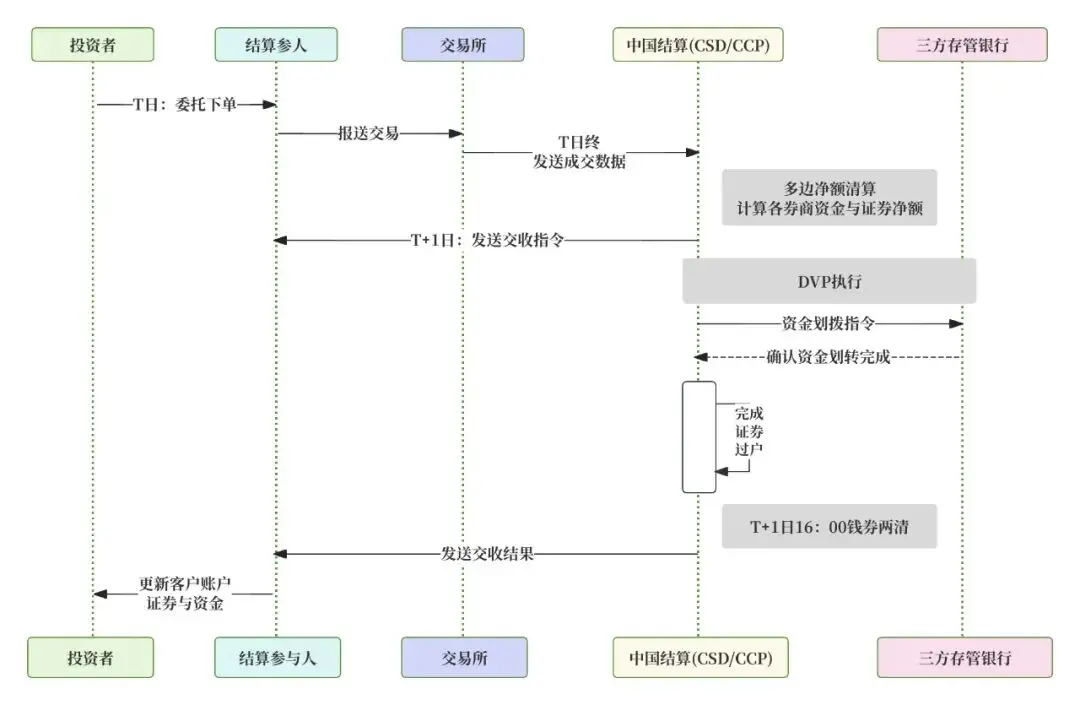 3、T+1日(交收日):16:00:中国结算正式实施DVP交收。