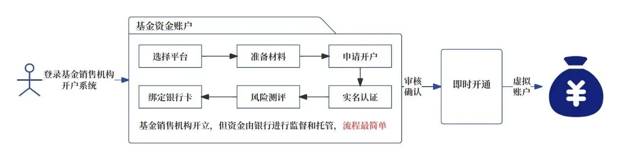 基金资金账户:在基金销售机构开立,用于存放投资基金所需资金的虚拟账户。注意,这个账户里的资金实际上托管在商业银行。