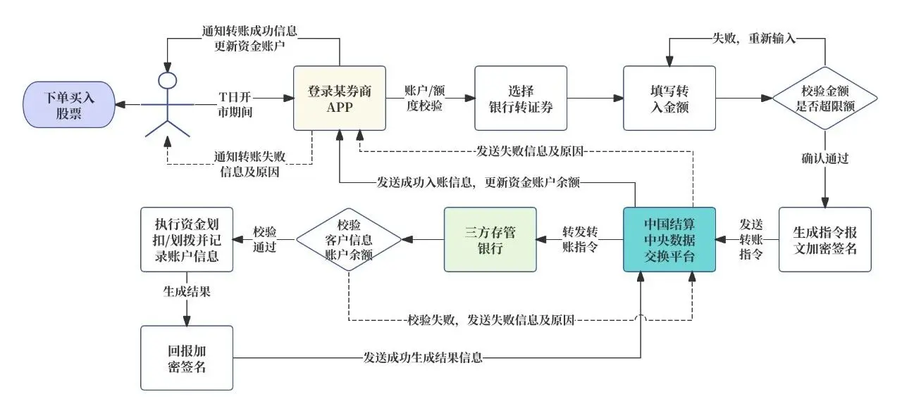 注:银行端维护着客户的银行账户信息,并与证券公司的客户资金账户建立了映射关系(即第三方存管关系)。