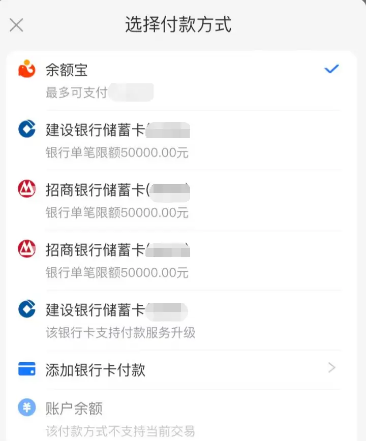 1、在某宝上看到一支牛牛基金,进行申购时发现钱不够,此时怎么办?当然是选择其它付款方式,如下图所示: